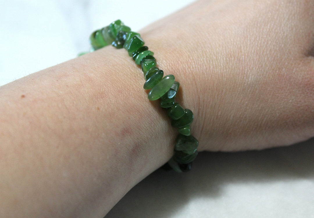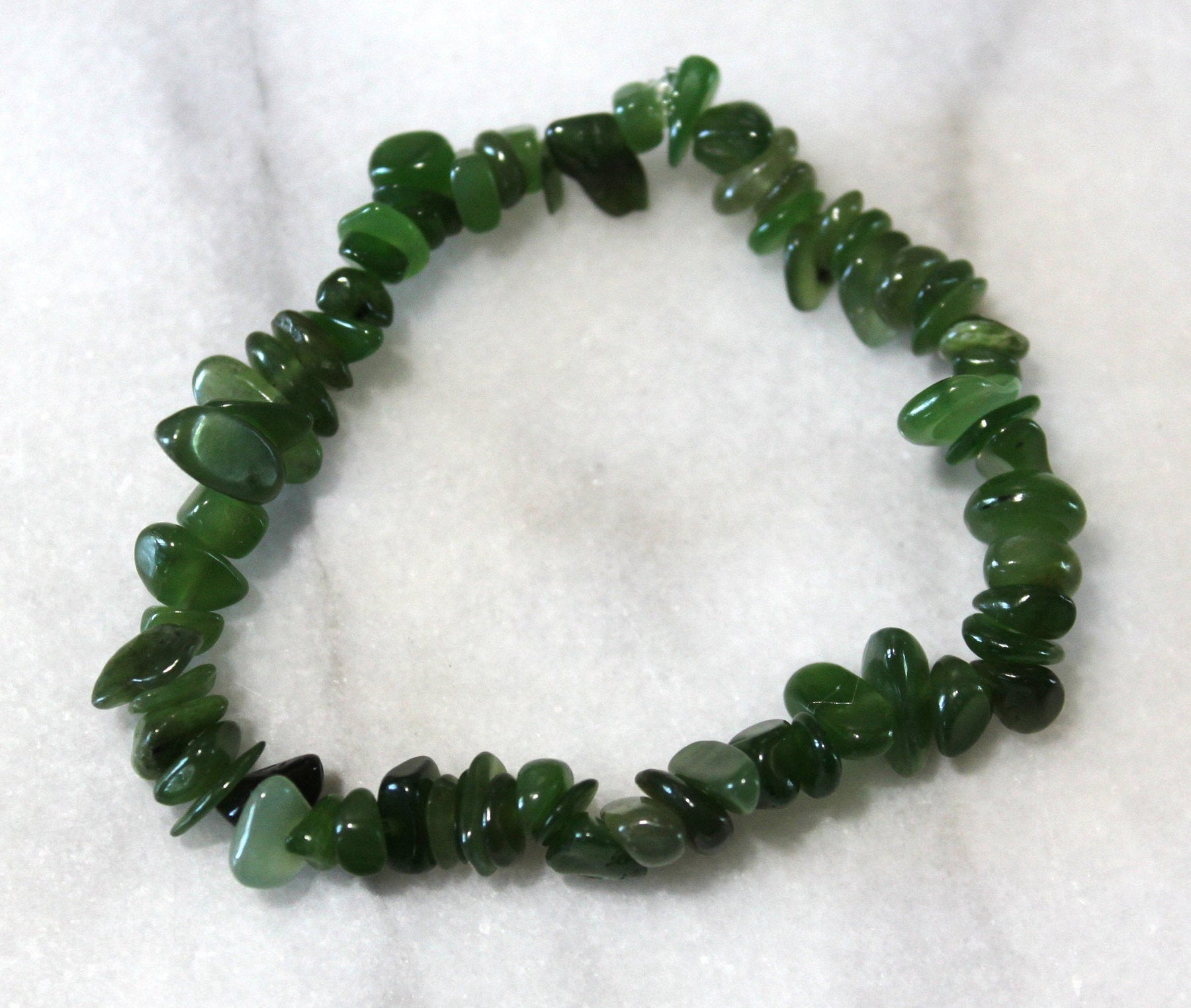 Green Canadian Nephrite Jade Chip Bracelet - Good Luck, Open Heart Chakra