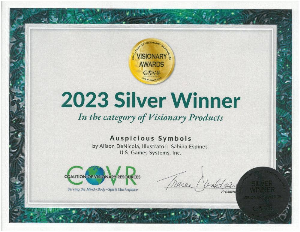 Auspicious Symbols for Luck and Healing is a vibrant 44-card deck and book set presenting good luck charms, mystical images, talismans, multi-cultural deities, and spiritual healers with messages of positivity and enlightenment. This deck includes symbols that suggest not only luck but also health and healing, abundance, and opportunities. Healing energy brought forth by these many symbols and images offers powerful medicine for the body, spirit, and mind. Silver winner 2023 COVR Visionary Awards - Visionary Products. Written by Alison DeNicola, artwork by Sabina Espinet.