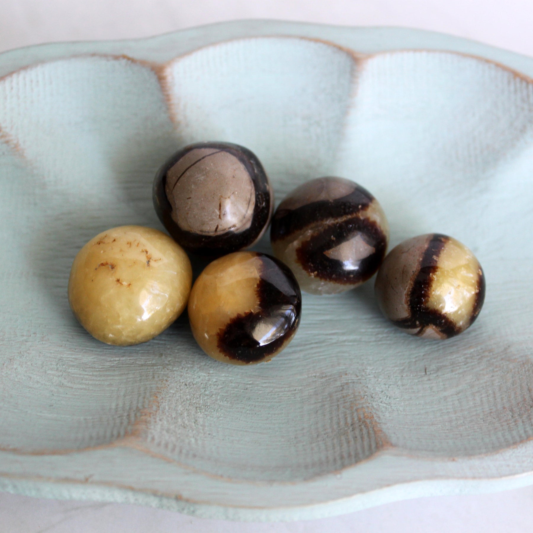 - One Septarian tumbled stone between 1/2 and 1 inch in diameter