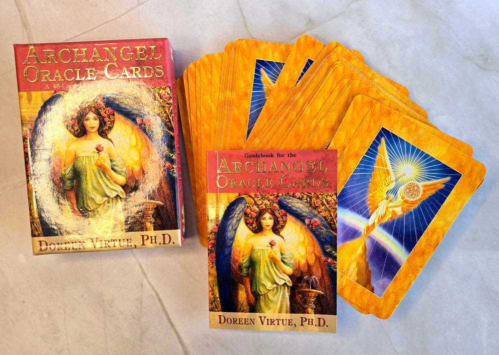 A sampling of oracle and tarot card decks curated by Healing Winds Emporium founder, Johanna.
