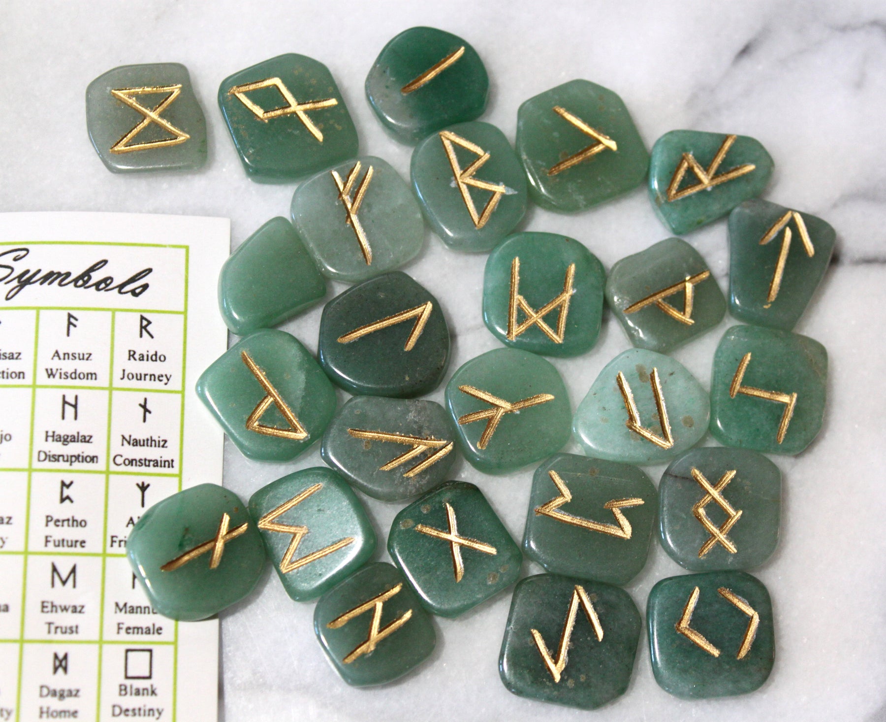 Viking Elder Futhark Rune Stone Set: Green Aventurine